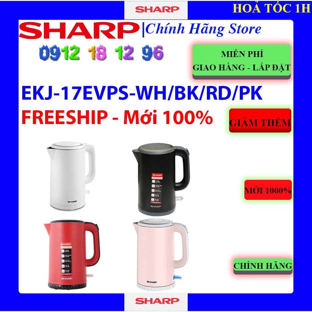 [Mã ELHAMS5 giảm 6% đơn 300K] ĐỦ MÀU - Bình đun siêu tốc Sharp 1.7 lít EKJ-17EVPS-WH/BK/RD/PK - EKJ-17VPS-BK