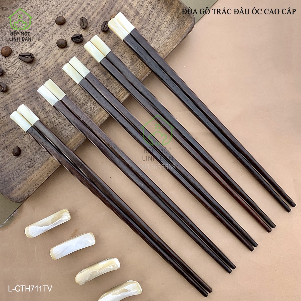 Giới thiệu [Mã BMBAU50 giảm 10% đơn 99k] Đũa cao cấp - Gỗ trắc đầu cẩn ốc biển New Zealand_Hàng VIP_Bộ 05 đôi vuông (CTL711TV-05)