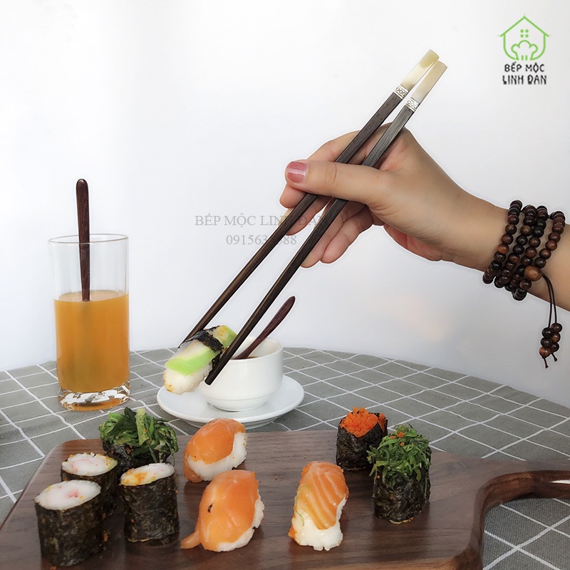 Giới thiệu [Mã BMBAU300 giảm 10% đơn 499K] Đũa cao cấp gỗ trắc đầu ốc viền bạc - HÀNG SIÊU SANG - Hộp 10 đôi vuông (CTL716)