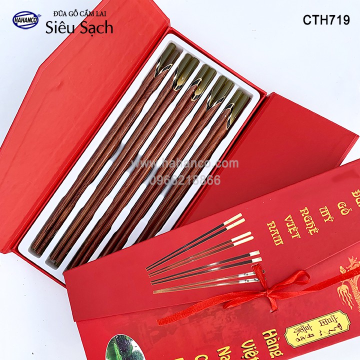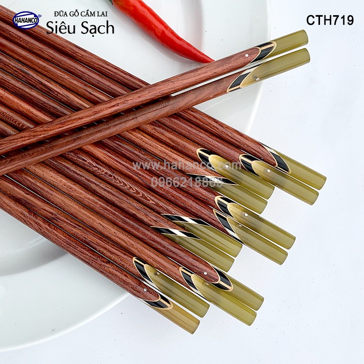Giới thiệu Đũa gỗ Cẩm - đầu cẩn thạch chéo một màu (10 đôi/Hộp) Tặng kèm hộp đẹp làm quà biếu - CTH719 - HAHANCO