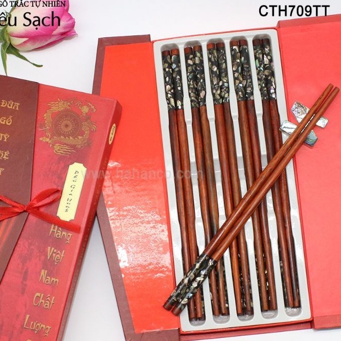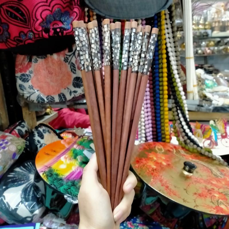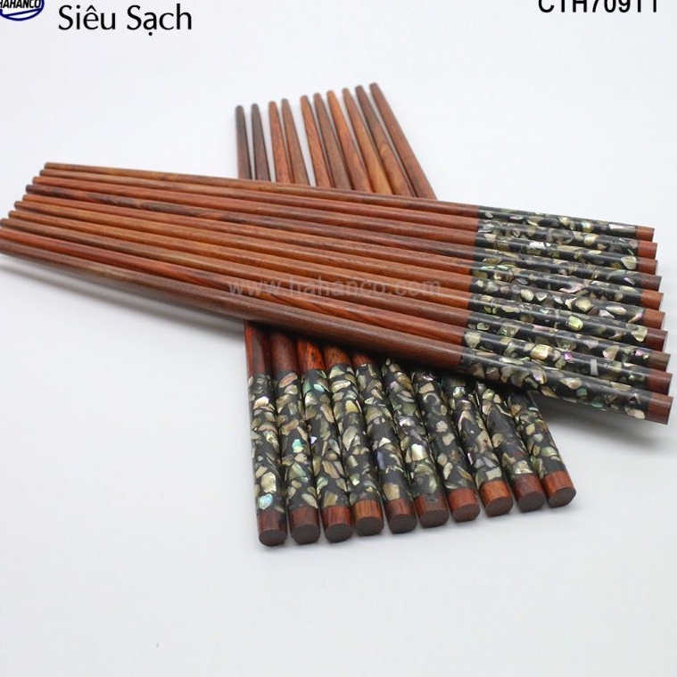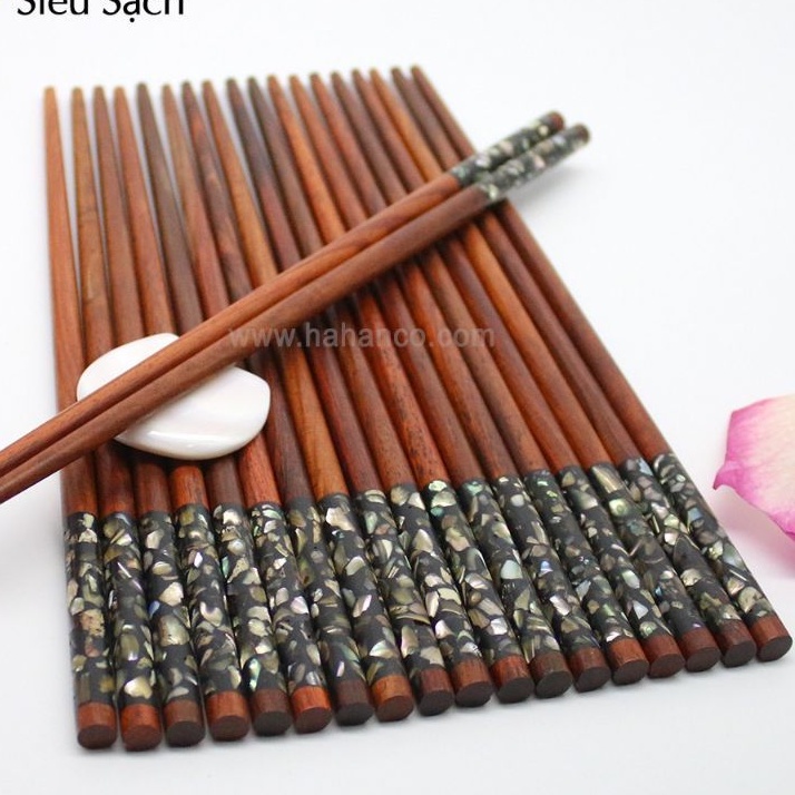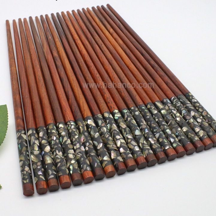 Nhà cửa & Đời sống > Dụng cụ nhà bếp > Cây vét bột & đồ gắp thức ăn || Đũa gỗ Trắc đầu khảm bào ngư New Zealand (10 đôi)Còn hàng