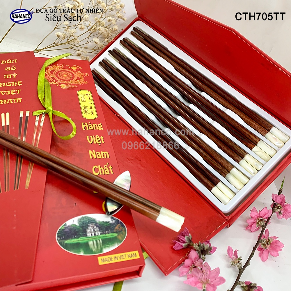 Đũa gỗ Trắc đầu ốc xà cừ Singapore (10 đôi/hộp) Sang trọng trên bàn ăn - CTH705TT
