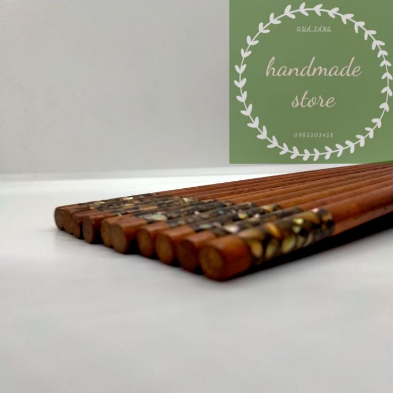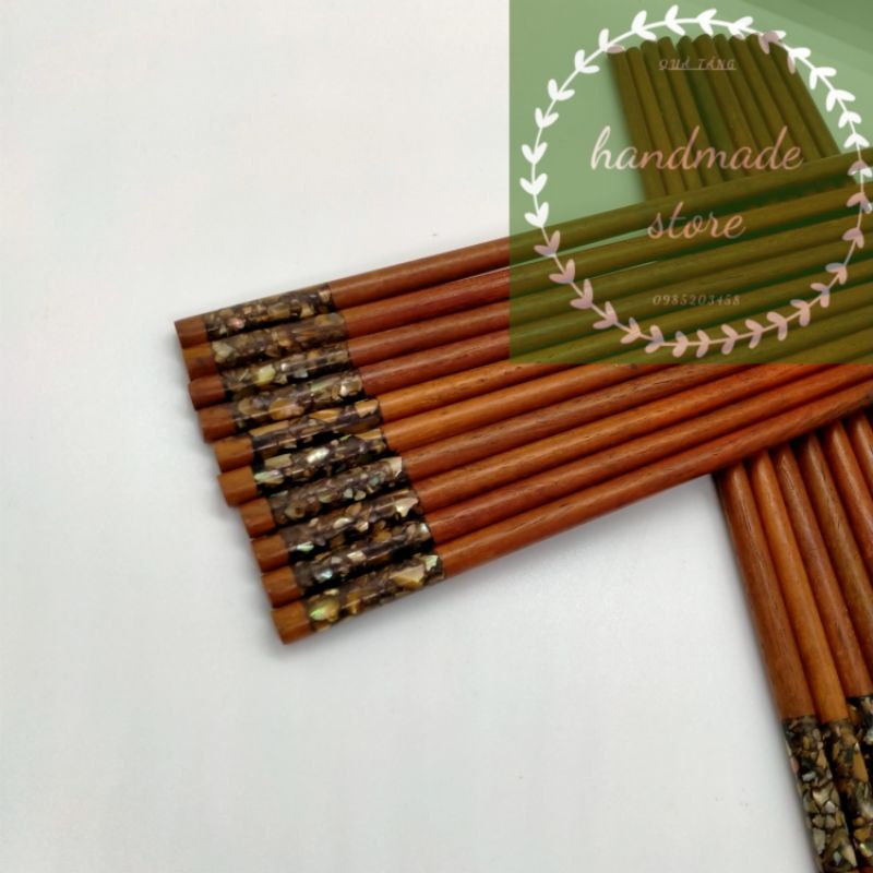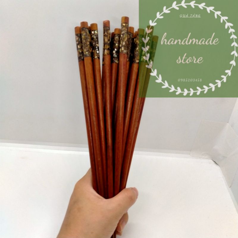 Nhà cửa & Đời sống > Dụng cụ nhà bếp > Cây vét bột & đồ gắp thức ăn || Đũa gỗ trắc đầu tròn khảm trai cao cấp (10đôi)Còn hàng