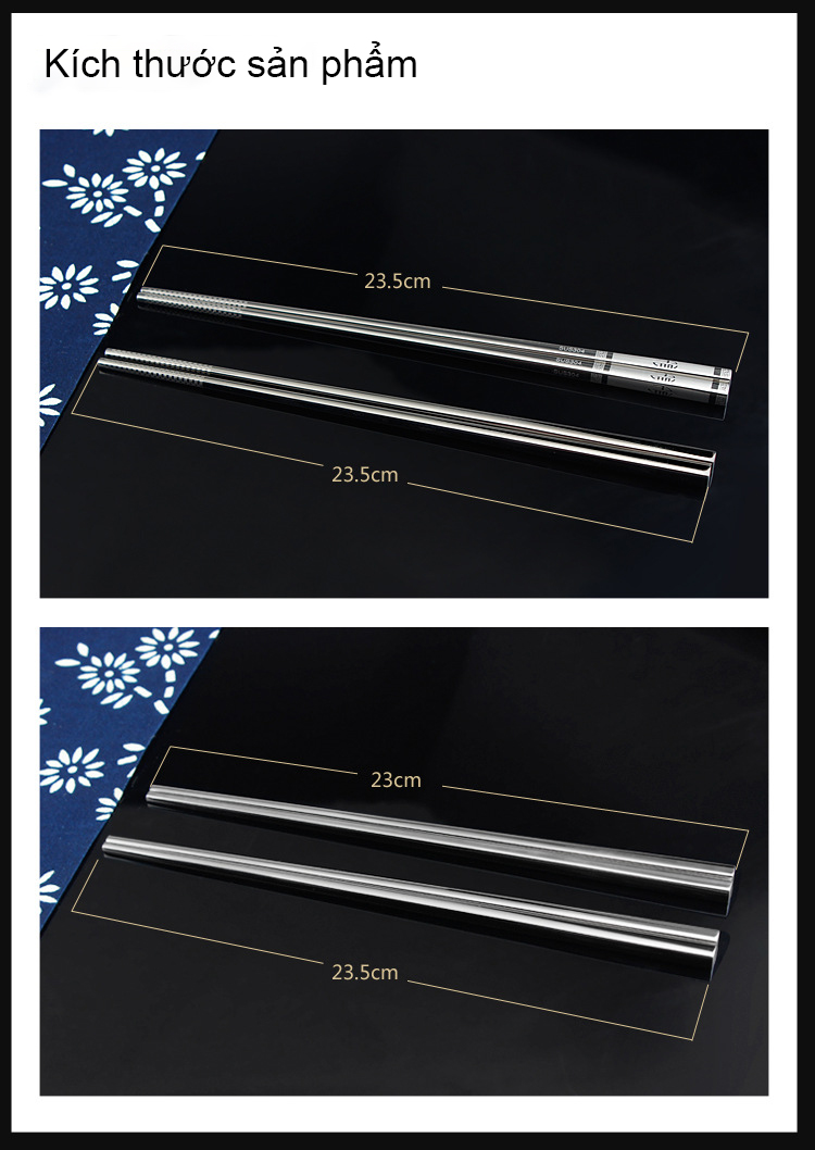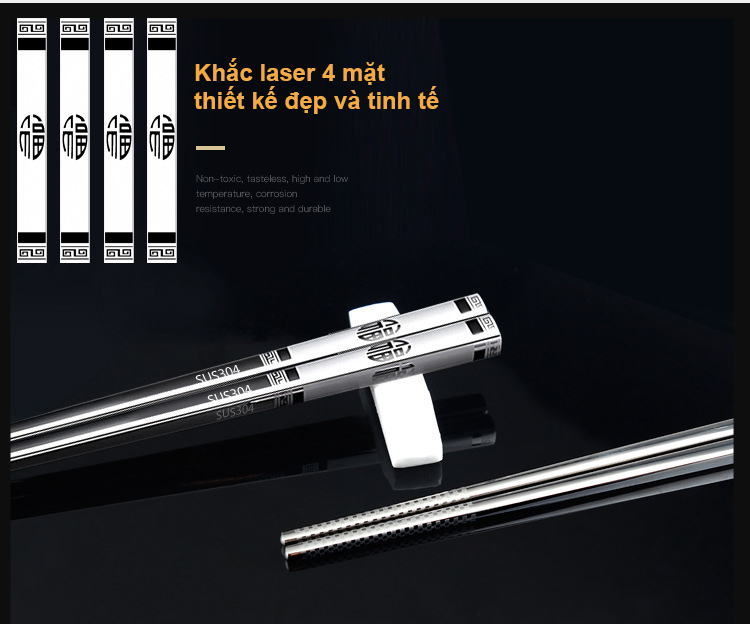 Tên sản phẩm: Đũa Inox 304 Ngăn Ngừa Ung Thư Do Đũa Tre Gây Ra, Thiết Kế Sang Trọng, Đẹp, Chống Trượt và Cách Nhiệt Tốt