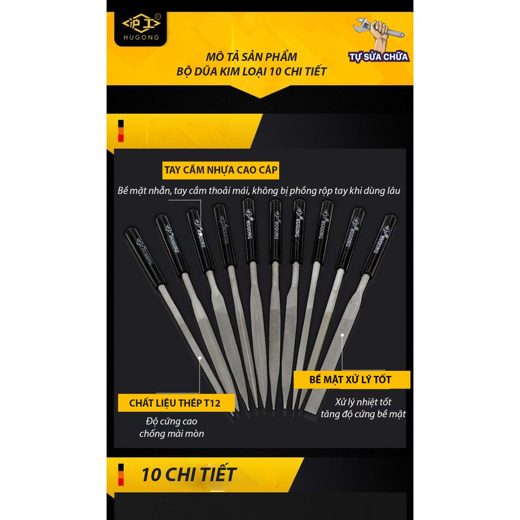 Bộ dũa mài kim loại hợp kim đa năng 10 cây đủ size chính hãng Hugong