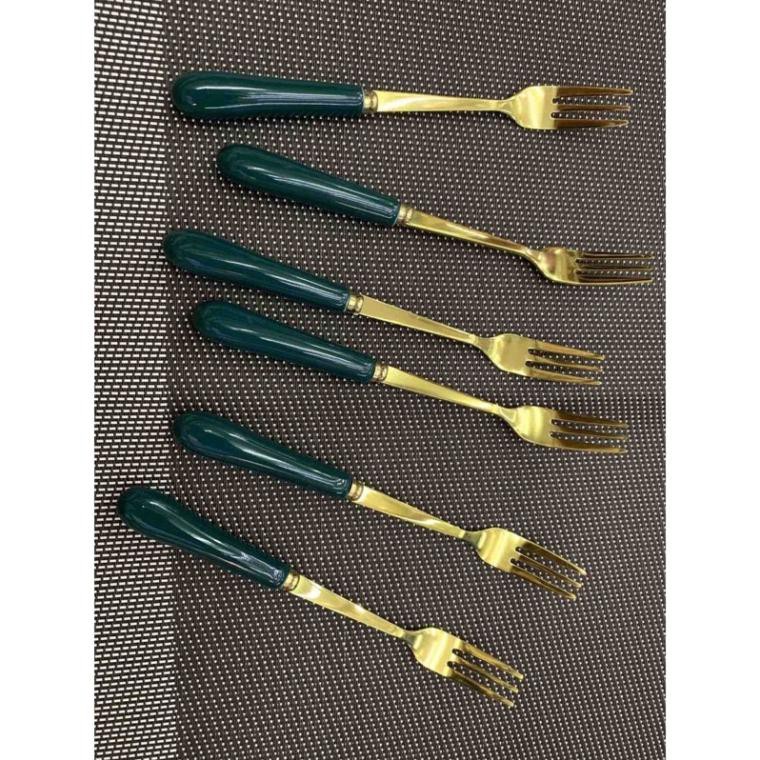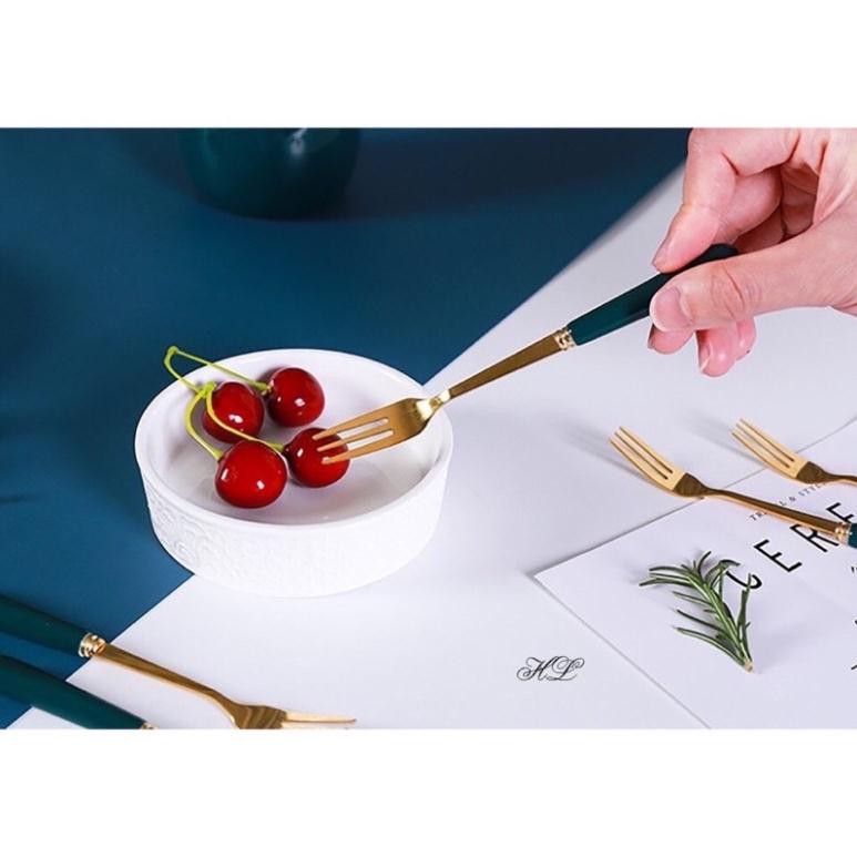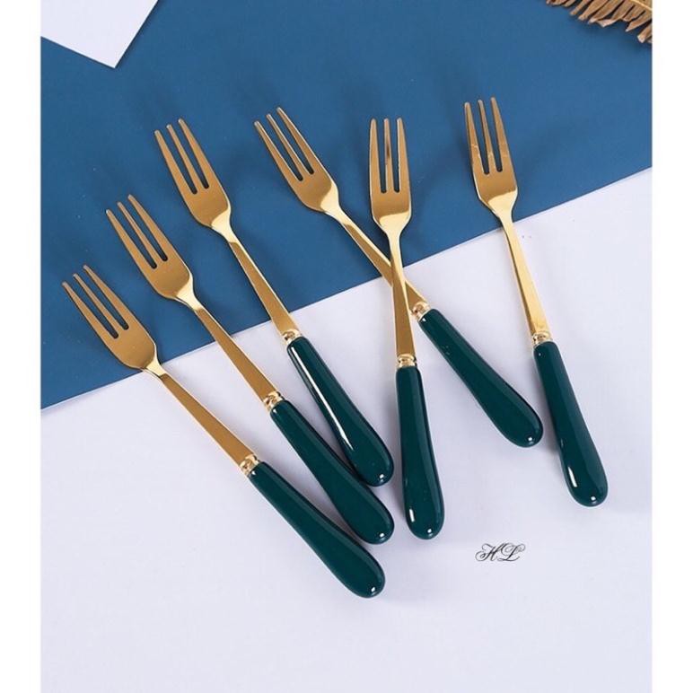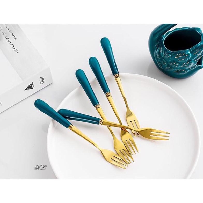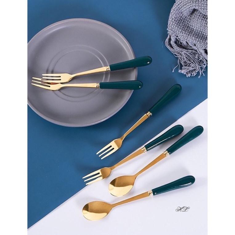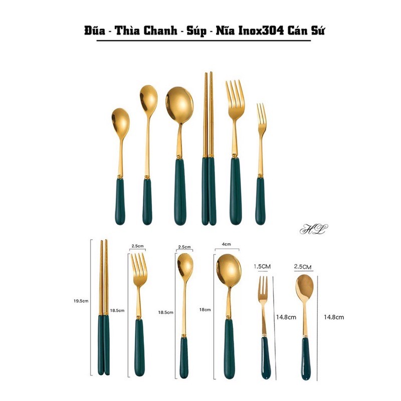 đũa thìa dĩa cán sứ mạ vàng xanh cổ vịt cao cấp