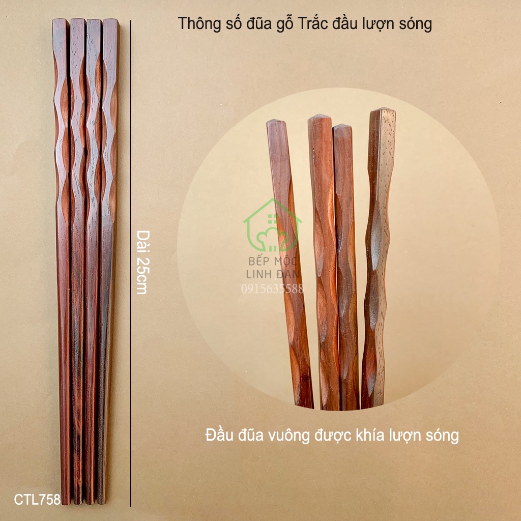 [Mã BMBAU50 giảm 10% đơn 99k] Đũa trắc tự nhiên Việt Nam siêu sạch, đầu khía sóng cách điệu_Bộ 05 đôi (CTL758-05)