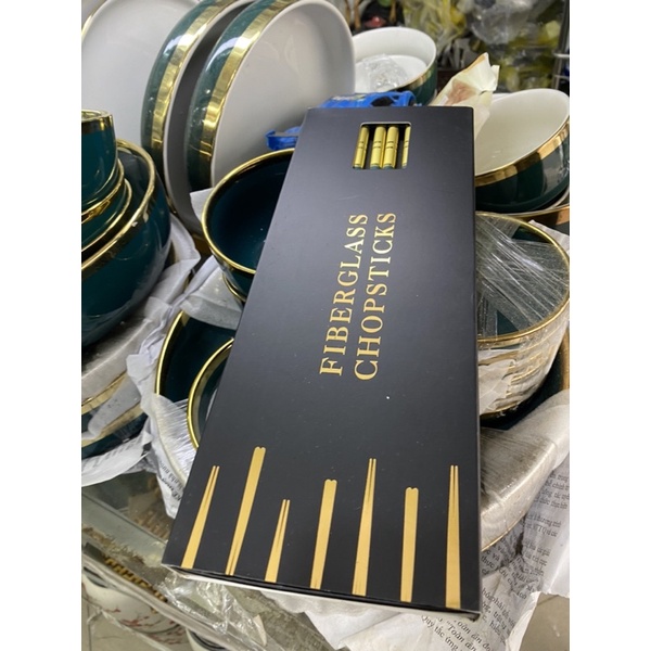 Nhà cửa & Đời sống > Bộ đồ bàn ăn > Bộ dao kéo || đũa xanh viền vàng cao cấp (set 10 đôi)Còn hàng