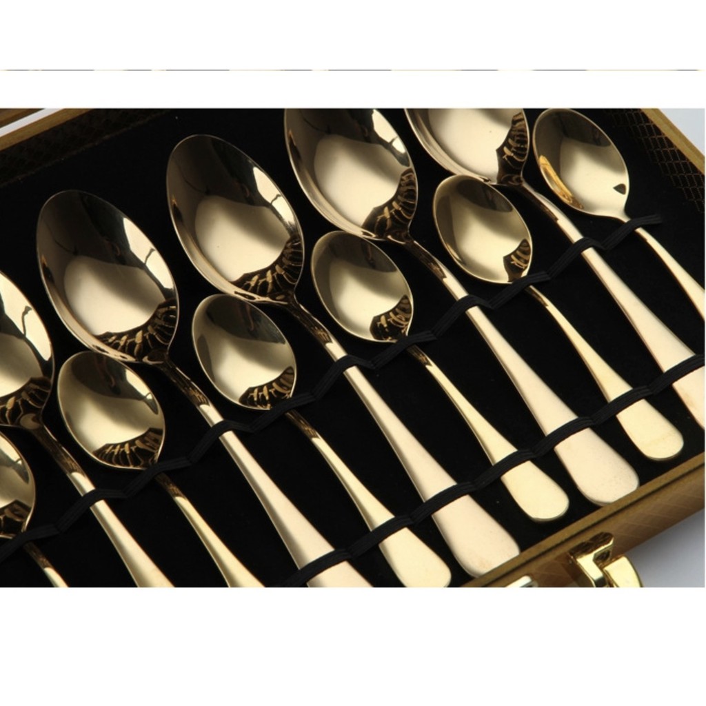 Bộ Dụng Cụ ăn Beefsteak cao cấp Gold Stainless Steel 24pcs - HanruiOffical