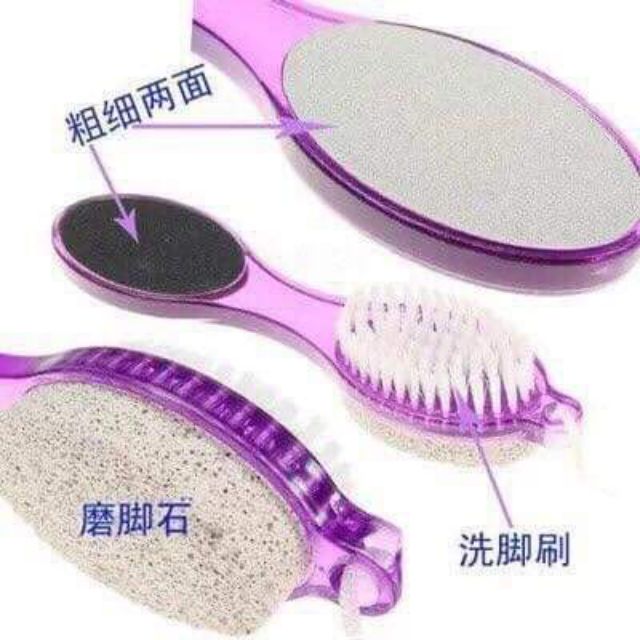 ❌Cấu tạo 4 mặt: Bàn chải nhựa, đá bọt khô, bàn chải kim loại, bàn chànhám