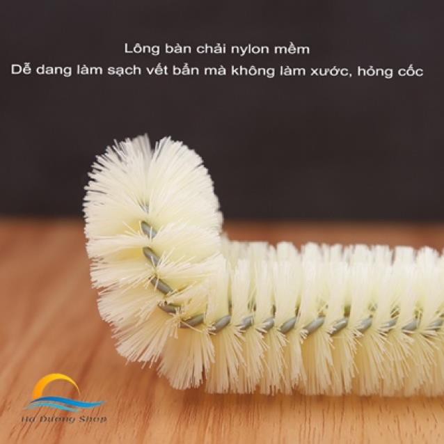 - Dụng cụ cọ rửa cốc chén, bình nước, bình sữa đa năng được thiết kế cán cầm là nhựa, phần thân chổi là thép không gỉ cao cấp và đầu chổi là các sợi mềm giúp làm sạch dễ dàng, nhanh chóng các vết bẩn, cặn thừa còn bám lại trên đồ dùng.