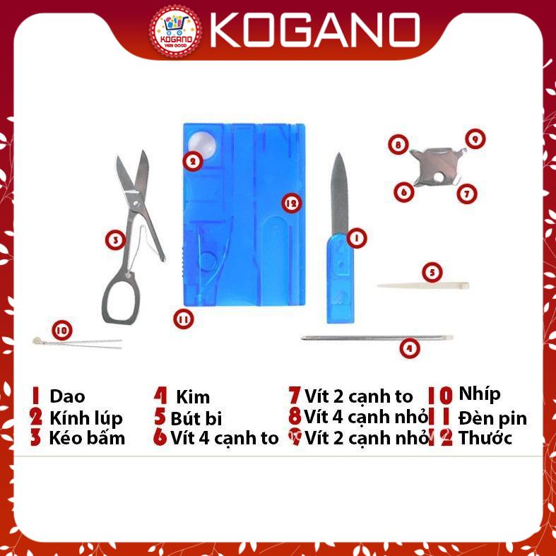 Bộ Dụng Cụ Đa Năng Bỏ Túi 13 Món Trong 1 KOGANO Bộ Dụng Cụ Sửa Chữa Nhỏ Gọn Như Thẻ ATM HG-001119 Nhỏ Gọn Dành Cho Gia Đình Và Các Trường Hợp Khẩn Cấp bao gồm tất cả trong một dụng cụ với: