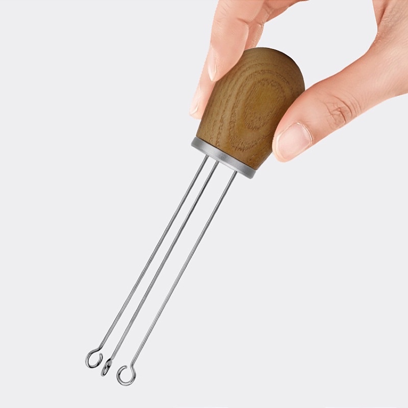 Thường thì cà phê sau khi xay ra rất dễ bị vón cục do trong quá trình xay bột cà phê bị tích điện nhất là khi ta dùng máy xay cà phê phổ thông, hiện tượng này rất dễ xảy ra. Vì thế nếu máy xay của bạn không tích hợp chế độ chống vón cục trong quá trình xay thì nên dùng đến dụng cụ đánh tơi bột cà phê này nhé. Chỉ mất thêm ít giây thôi nhưng sẻ giúp cho ly cà phê của bạn ngon hơn.Cây đánh tơi bột cà phê Espresso được thiết kế với núm cầm bằng gỗ, cảm giác cầm vừa tay, 3 thanh thép được uốn hình tròn ở phần đầu làm tăng diện tích tiếp xúc, len lỏi đánh tơi bột cà phê 1 cách hiệu quả.
