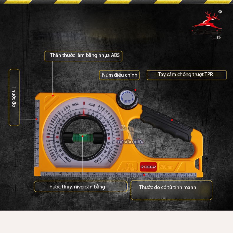 Dụng cụ đo độ nghiêng 360 độ có nivo từ tính mạnh chính hãng R'deer_ Dùng để đo góc, độ dốc, độ nghiêng của công trình trong thi công xây dựng, kiến trúc, lắp đặt trang thiết bị, trang trí nội thất...