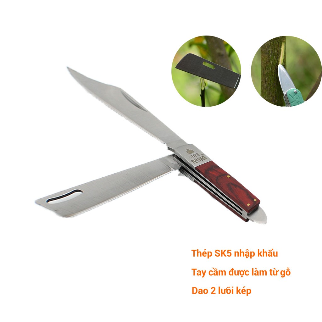Dao ghép 2 lưỡi Sakagawa 1078 chuyên sử dụng để ghép cây, ghép cành. Với lưỡi thép cacbon SK5 từ Nhật sắc bén, lưỡi dao có thể gấp gọn. Dao ghép 2 lưỡi Sakagawa 1078 đã trở thành sản phẩm tin dùng của nhiều người thợ trong suốt thời gian qua.Một số lưu ý khi sử dụng dao ghép 2 lưỡi Sakagawa 1078