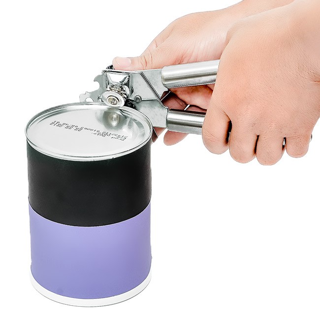 Dụng cụ có thiết kế riêng biệt, để tạo lực bẩy mở nắp các loại hộp khác nhau. Khi cắt nắp đồ hộp chỉ cần kẹp nhẹ rồi xoay cần là nắp hộp được cắt ra hết sức dễ dàng và tiện lợi.