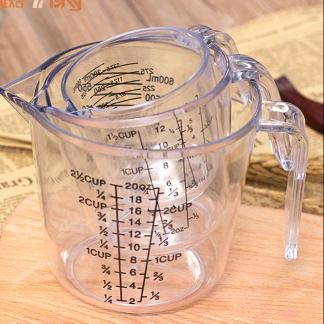 Dụng cụ làm bánh: Cốc đong có chia vạch 300ml và 600mlChất liệu: nhựa abs dày 0,1cm. Cứng cáp, đạt tiêu chuẩn của fda.