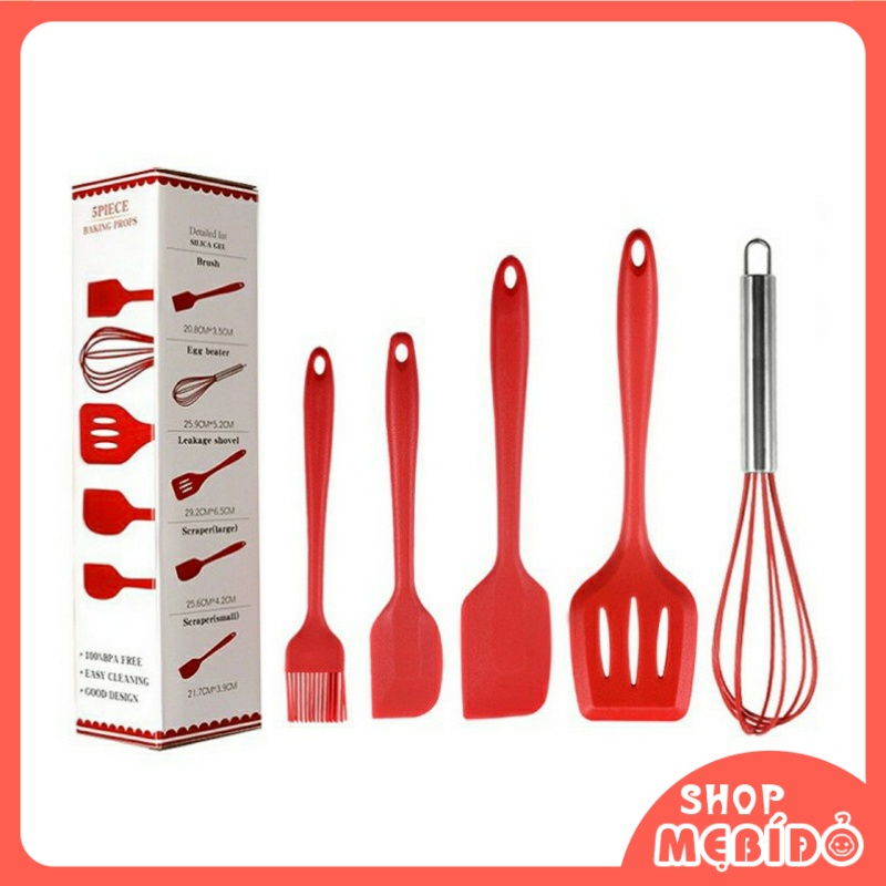 Bộ Dụng Cụ Làm Bánh Nấu Ăn Dụng Cụ Nhà Bếp 5 Món Silicone Chịu Nhiệt Cao Shop Mẹ Bí Đỏ