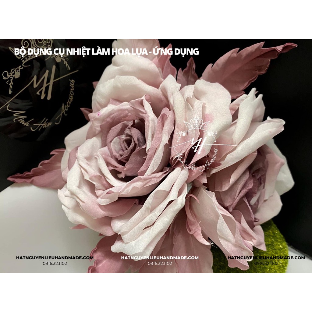 Mô tả: bộ dụng cụ làm hoa lụa gồm 1 cán nhiệt màu nâu và 17 thanh tạo hình có thể tháo rời,1 mút kê ,1 đế để cánLink hướng dẫn làm hoa và sử dụng dụng cụ: Các link hướng dẫn làm hoa dụng cụ - millinery flower making tools