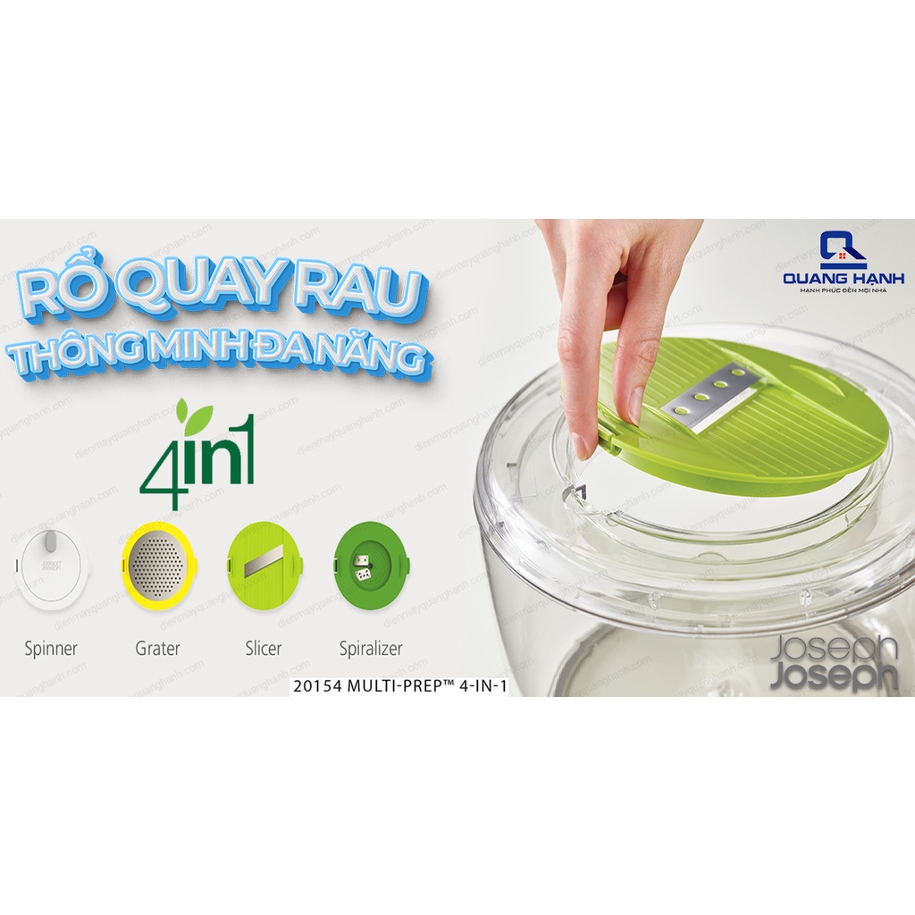 Giới thiệu Rổ quay rau Joseph Joseph 20154 Multi-Prep™ 4 in 1, đa năng, quay salad, cắt xoắn ốc, bào và cắt lát