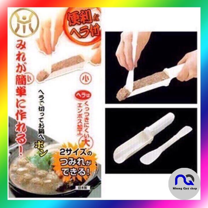 - Dụng cụ được thiết kế gồm 1 đầu nhỏ, 1 đầu to và 1 thìa gạt giúp bạn tạo những viên thịt đều nhau mà không lo bẩn tay.- Chỉ cần cho giò sống, hoặc chả đã băm để vào đầu nhỏ hoặc đầu to (tùy bạn chọn) rồi dùng đũa gạt xuống là được.