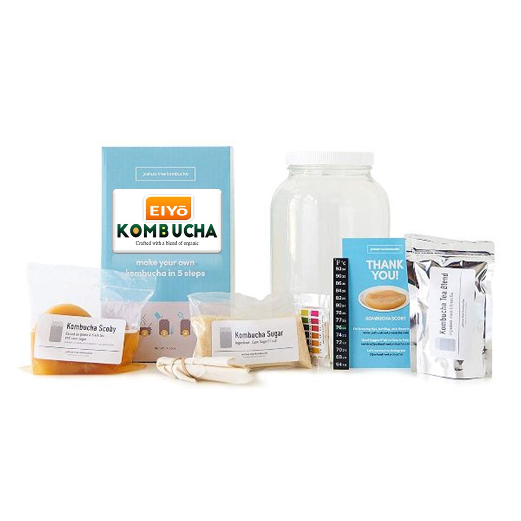 Bộ dụng cụ khởi động tự làm Kombucha của nhà Sản Xuất EIYō TEA làm cho việc pha chế Kombucha của bạn trở nên dễ dàng nhất có thể! Bộ sản phẩm này bao gồm tất cả các nguyên liệu bạn cần để ủ mẻ Kombucha đầu tiên của bạn và đi kèm với 10 thành phần như sau: