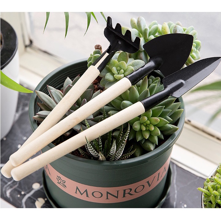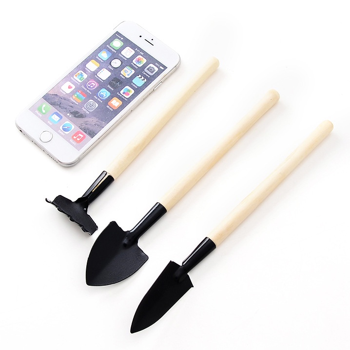 Bộ Dụng Cụ Làm Vườn Mini 3 Chi Tiết Cào Cuốc Xẻng Cán Gỗ