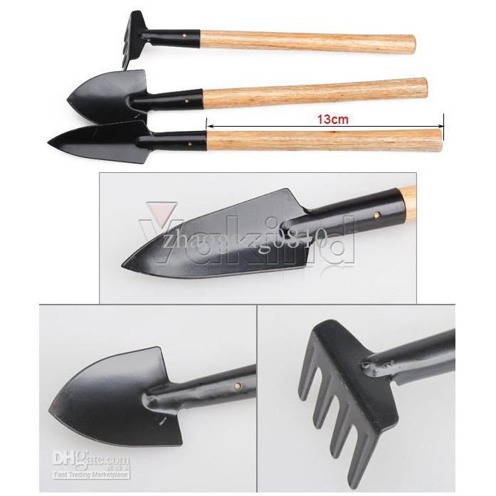 Bộ dụng cụ mini làm vườn 3 món gọn nhẹ làm vườn gồm, 1 xẻng, 1 xúc, 1 cào, sử dụng tiện lợi, kiểu dáng đẹp, nhỏ gọn. Chất liệu thép không gỉ, chiều dài đầu kim loại 9cm, tay cầm dài 15cm.