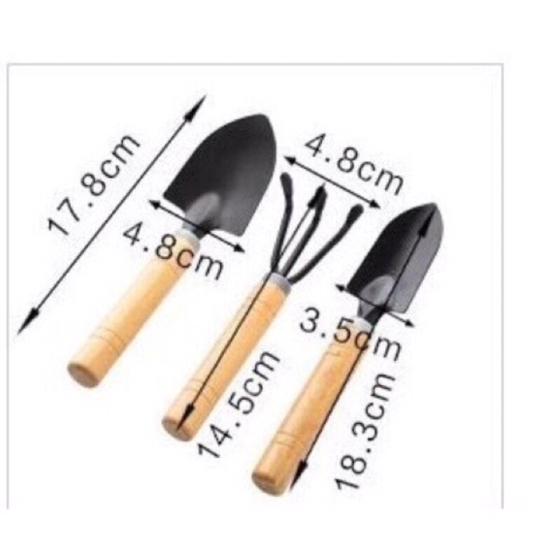 Bộ dụng cụ làm vườn 3 món (cán gỗ) gọn nhẹ làm vườn gồm, 1 xẻng, 1 xúc, 1 cào, sử dụng tiện lợi, kiểu dáng đẹp, nhỏ gọn. Chất liệu đầu kim loại 9cm, tay cầm dài 15cm.