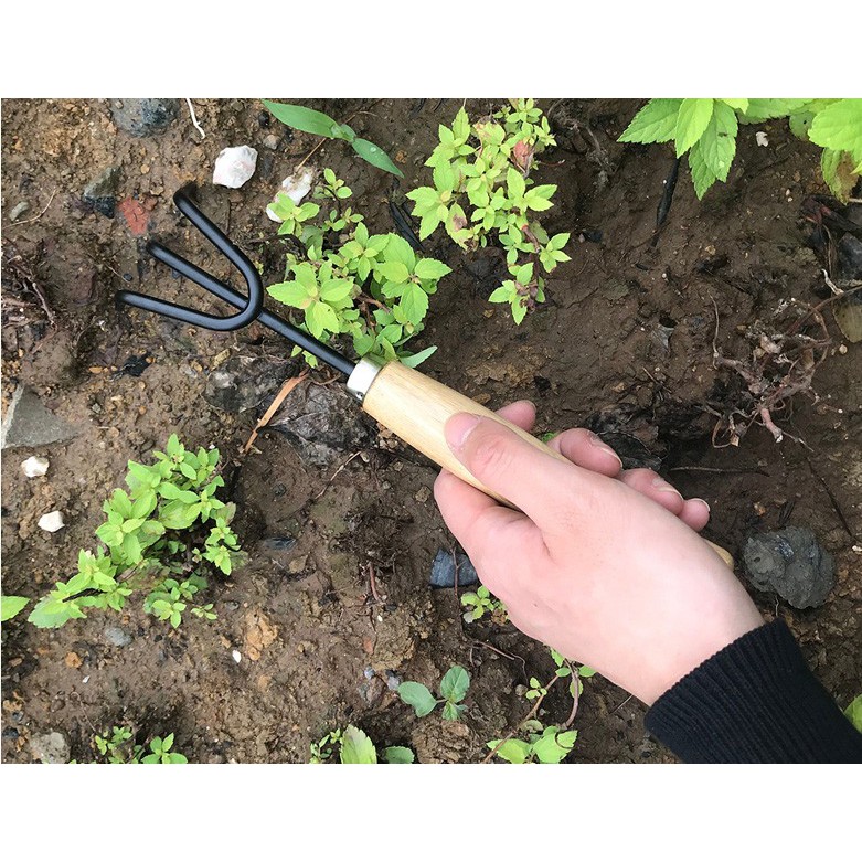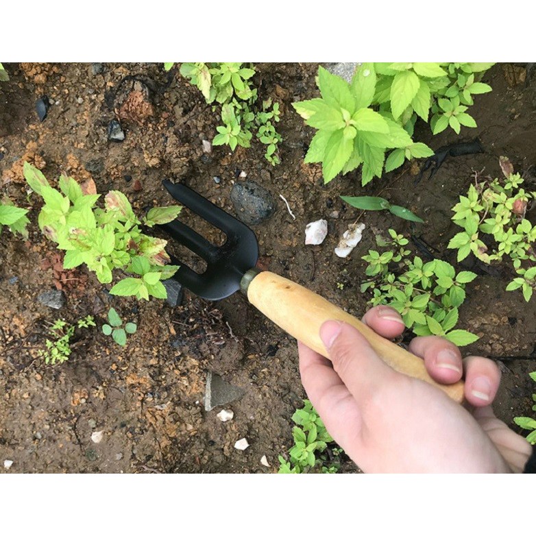 Bộ Dụng Cụ Làm Vườn gồm 3 món: cào đất, xẻng, xới đấtChất liệu: cán gỗ + kim loại