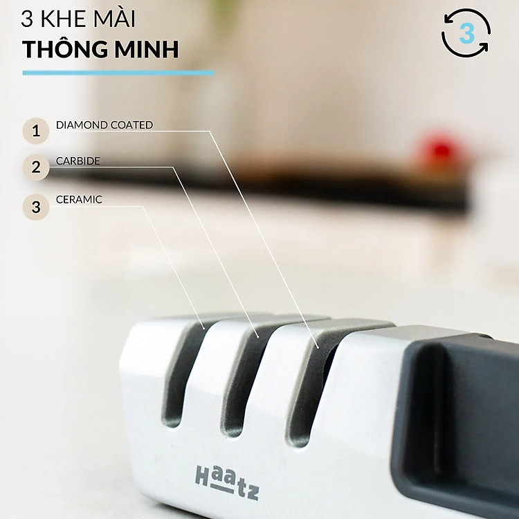 - 3 khe mài chuyên dụng phù hợp với nhiều loại dao khác nhau: