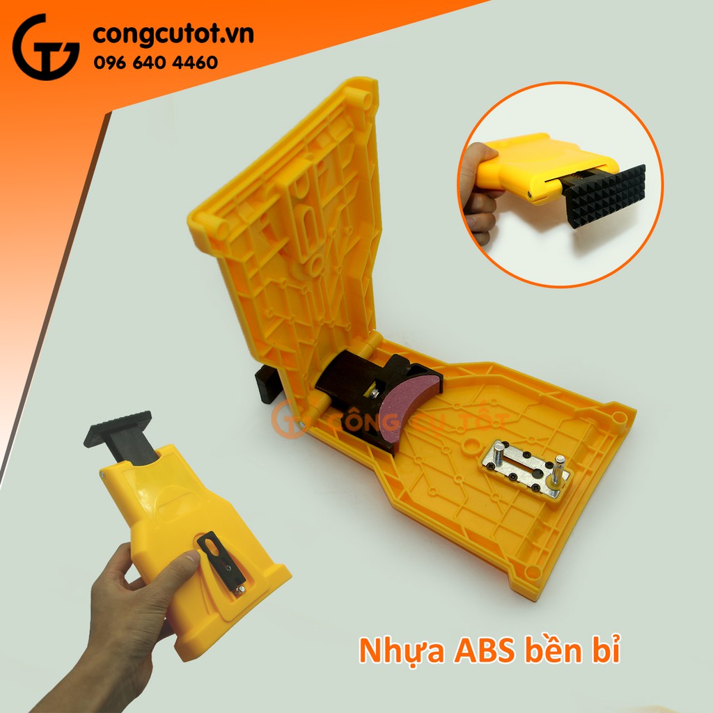 Chất liệu: Nhựa ABS nhẹ, cứng nhưng không giòn, độ đàn hồi tốt, chịu được va đập, chịu nhiệt tốt.Thiết kế chuyên dụng để mài lưỡi cưa xích nhanh chóng, tiện lợi.