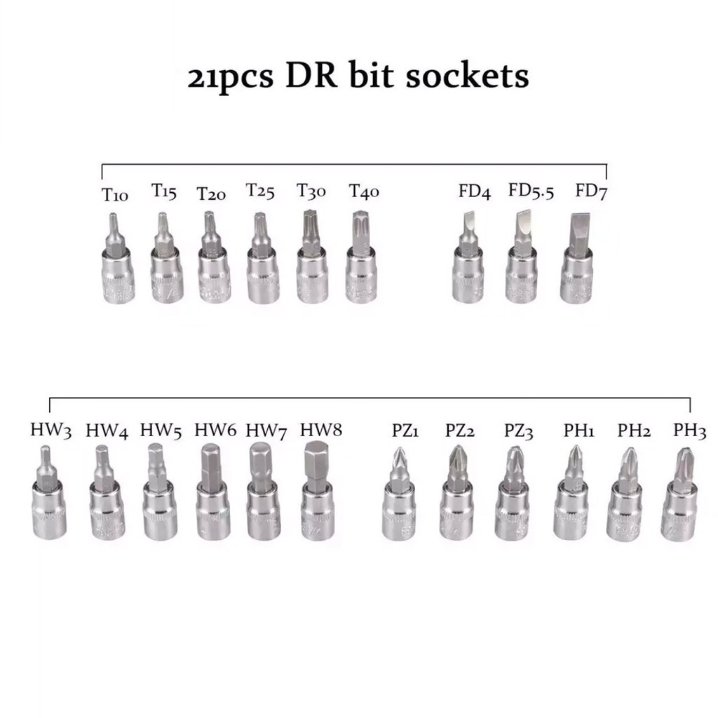 - Bộ sản phẩm gồm 46 chi tiết gồm mũi vặn vít và mũi vặn bu lông đủ các kích cỡ giúp công việc của bạn không bị gián đoạn khi đang làm việc
