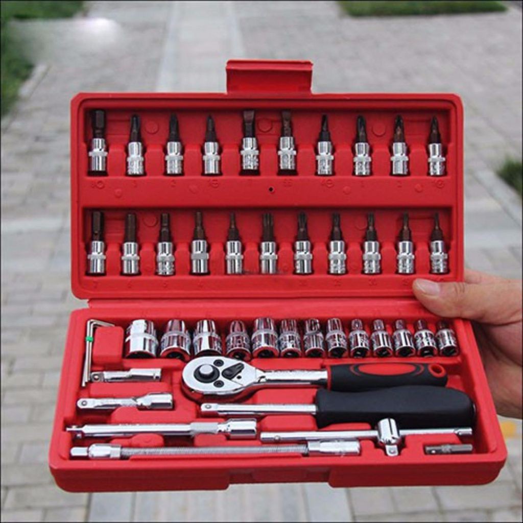Nhà cửa & Đời sống > Dụng cụ & Thiết bị tiện ích > Dụng cụ > Hộp dụng cụ cầm tay || Bộ dụng cụ mở bulong ốc vít đa năng 46 chi tiết, Không han gỉ Hàng Mới, Bộ dụng cụ sửa chữa oto xe máy 46 món đa năngCòn hàng