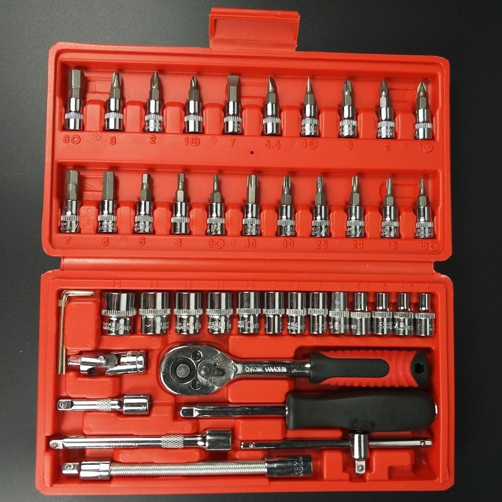 Bộ dụng cụ mở bulong ốc vít đa năng 46 chi tiết, Không han gỉ Hàng Mới, Bộ dụng cụ sửa chữa oto xe máy 46 món đa năng