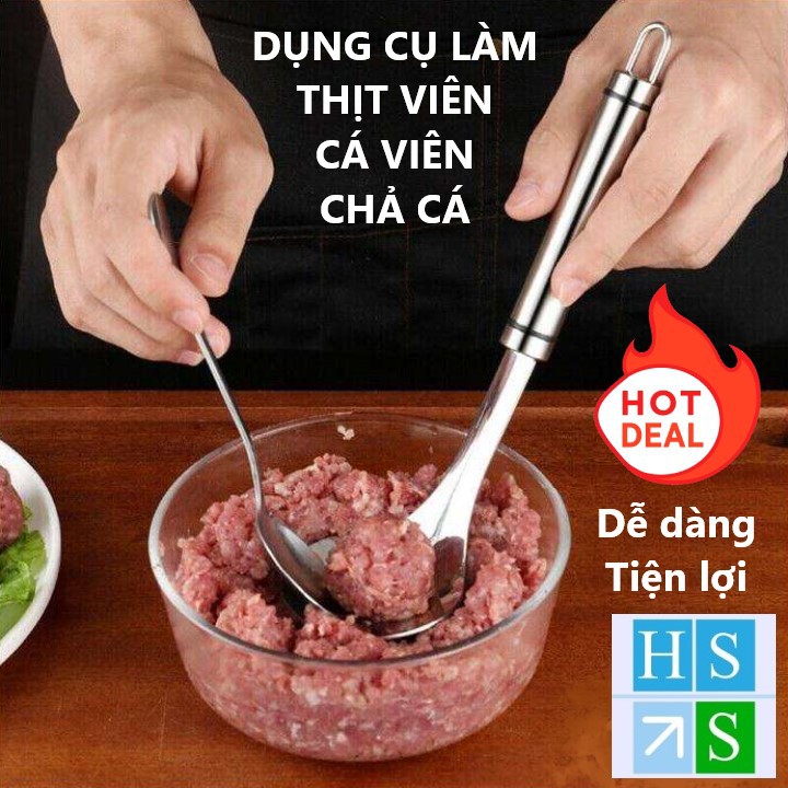 Nhà cửa & Đời sống > Dụng cụ nhà bếp > Cây vét bột & đồ gắp thức ăn || Dụng cụ nặn viên thịt (Chất liệu INOX dài 25cm) muỗng làm viên chả cá sắn viên mọc tiện dụng - HS Shop Đà NẵngCòn hàng