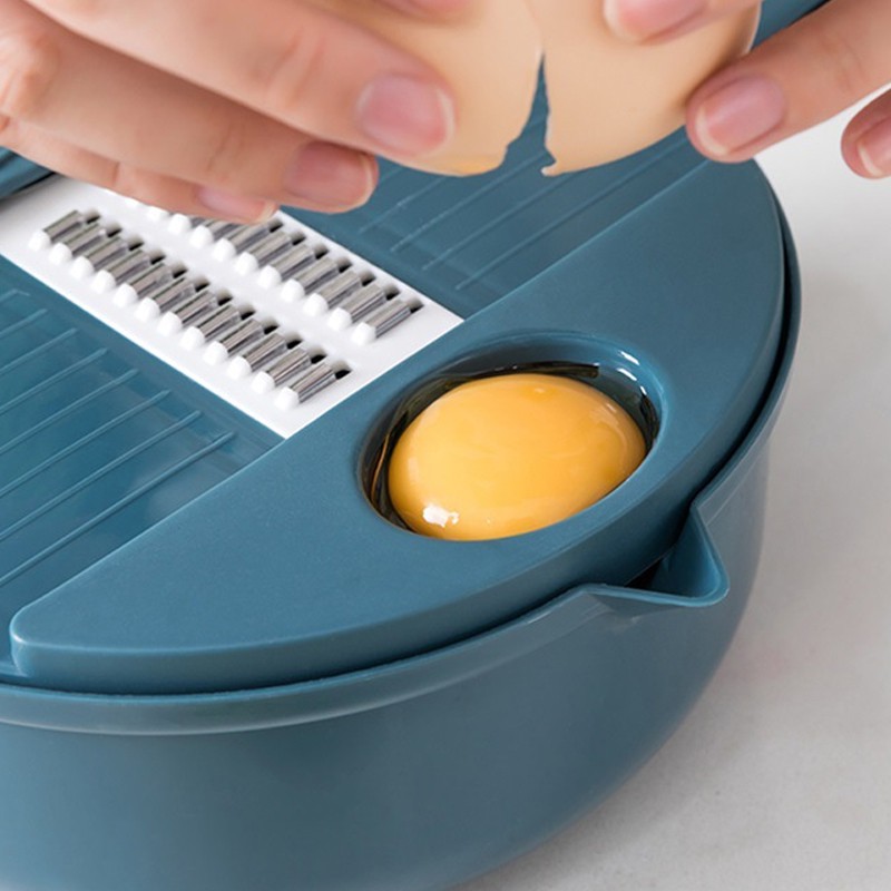 Thiết kế nhỏ gọn tích hợp nhiều chức năng trong cùng một sản phẩm: bào sợi, thái lát, bào khoanh, lược trứng, thau rửa...
