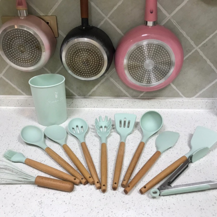 + Bộ dụng cụ nấu ăn 11 món silicone gồm 9 màu: Xanh lam, Xanh Mint, Xanh đậm, Đen tuyền, Xám, Hồng, Đỏ, Tím, Mix màu.