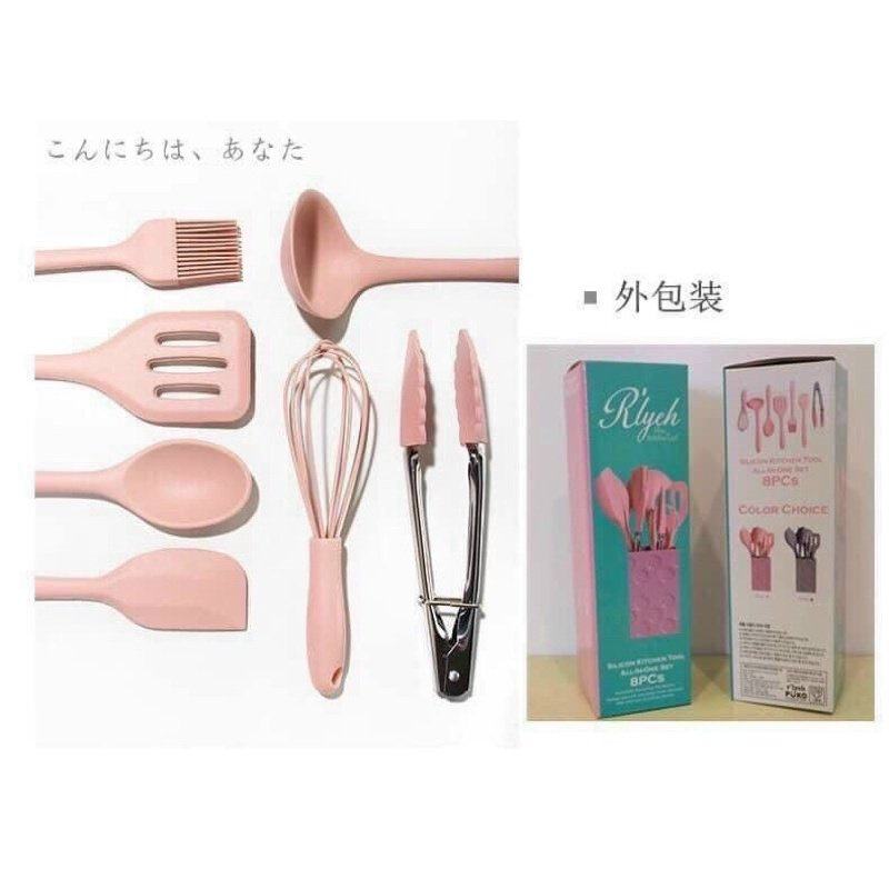 Bộ dụng cụ nhà bếp 8 món chất liệu silicon đặc cao cấp, bền đẹp, chống làm xước chảo/ nồi chống dính