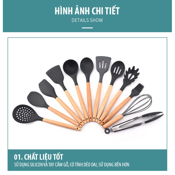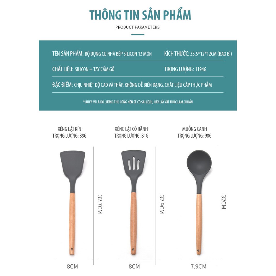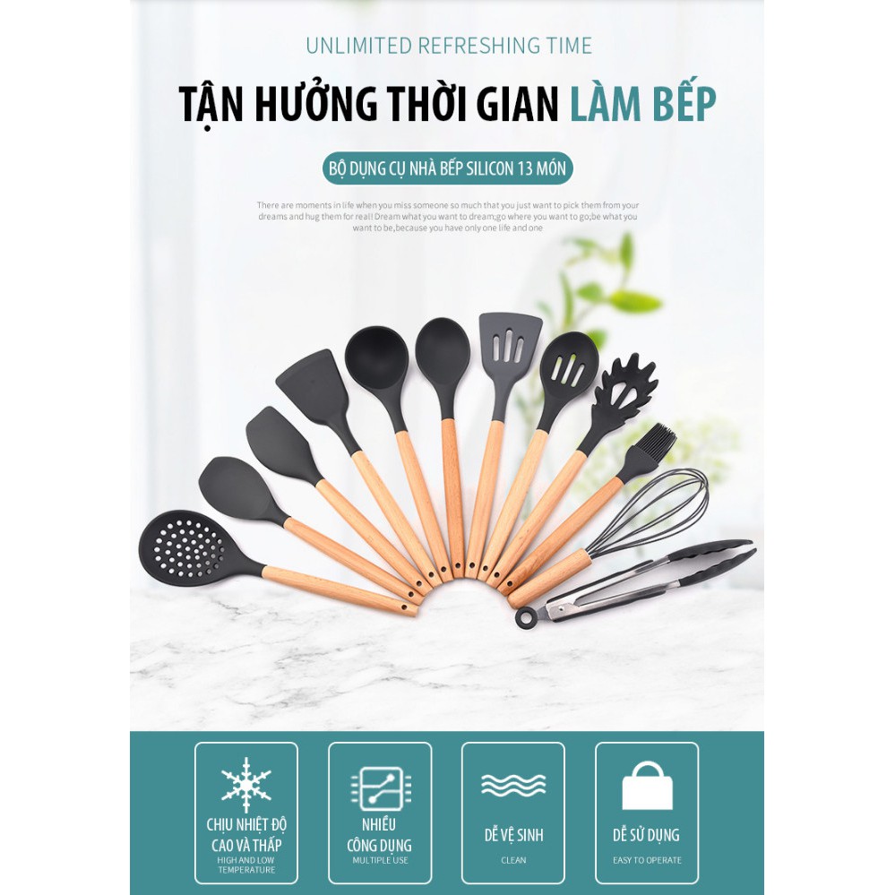 Bộ Dụng Cụ Nhà Bếp Silicon 13 MónĐẶC ĐIỂM NỔI BẬT :
