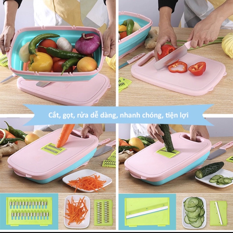 Bộ Dụng Cụ Nhà Bếp Thớt , Rổ , Dao , Nạo Đa Năng 9 Món Gấp Gọn Thiết Kế Sang Trọng Tiện Lợi