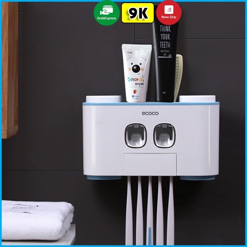 Dụng Cụ Nhả Kem Đánh Răng Dán Tường 4 Cốc Ecoco Cao Cấp(Bảo Hành 6 Tháng)