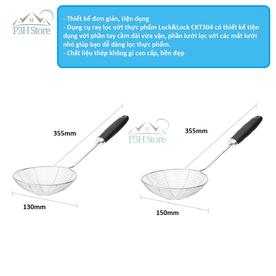 Dụng cụ ray lọc , vợt vớt thực phẩm Lock&Lock CKT303 CKT304 CPKB1161- Kích thước: Đường kính vợt 13cm kích thước 335x130mm