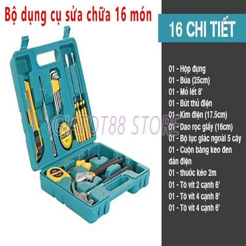 Ngoài ra, sản phẩm còn chống gỉ sét dù có tiếp xúc với điều kiện làm việc ẩm ướt hay thời tiết khắc nghiệt. Thiết kế thông minh Bộ dụng cụ sửa chữa đa năng 16 chi tiết có kiểu dáng nhỏ gọn, trọng lượng nhẹ, không chiếm nhiều diện tích hay gây vướng víu khi mang theo sử dụng. Bộ sản phẩm được thiết kế với hộp đựng dạng vali xách tay có kích thước nhỏ, hết sức gọn gàng giúp các dụng cụ bên trong được bảo quản tốt nhất và không bị thất lạc cũng như không lo bị hư hỏng.