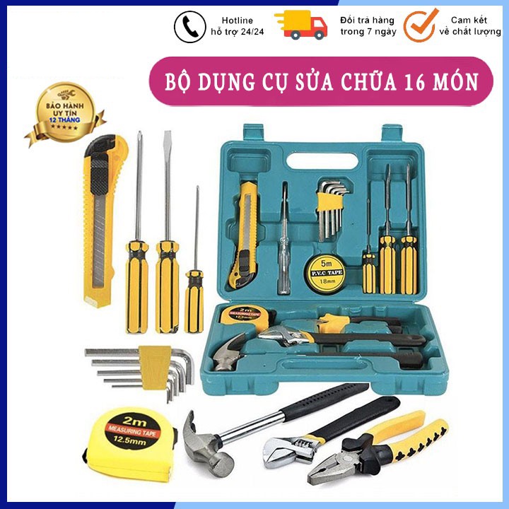Bộ dụng cụ sửa chữa đa năng 16 chi tiết thiết kế nhỏ gọn, bền bỉ và tiện lợi dùng trong sửa chữa, lắp đặt đối với cả công việc gia đình. Sản phẩm được làm bằng chất liệu cao cấp mang đến hiệu suất làm việc cao khi được đựng trong một chiếc hộp với kích thước nhỏ gọn, cung cấp không gian lưu trữ, cất giữ các vật dụng sửa chữa một cách thuận tiện và hợp lý nhất. Đây chắc chắn sẽ là sản phẩm làm bạn hài lòng một cách tuyệt đối.Thiết kế thông minh Bộ dụng cụ sửa chữa đa năng 16 chi tiết có kiểu dáng nhỏ gọn, trọng lượng nhẹ, không chiếm nhiều diện tích hay gây vướng víu khi mang theo sử dụng. Bộ sản phẩm được thiết kế với hộp đựng dạng vali xách tay có kích thước nhỏ, hết sức gọn gàng giúp các dụng cụ bên trong được bảo quản tốt nhất và không bị thất lạc cũng như không lo bị hư hỏng.