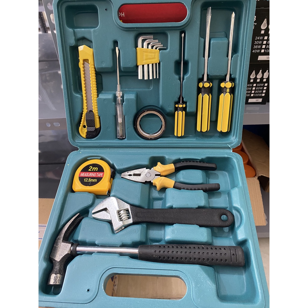 📷 Gồm 16 món: cờ lê, kềm, búa, tua vít, keo, thước, dao dọc giấy, thước kéo, băng dính điện…, công cụ hỗ trợ hiệu quả cho công việc sửa chữa các vật dụng điện trong nhà.