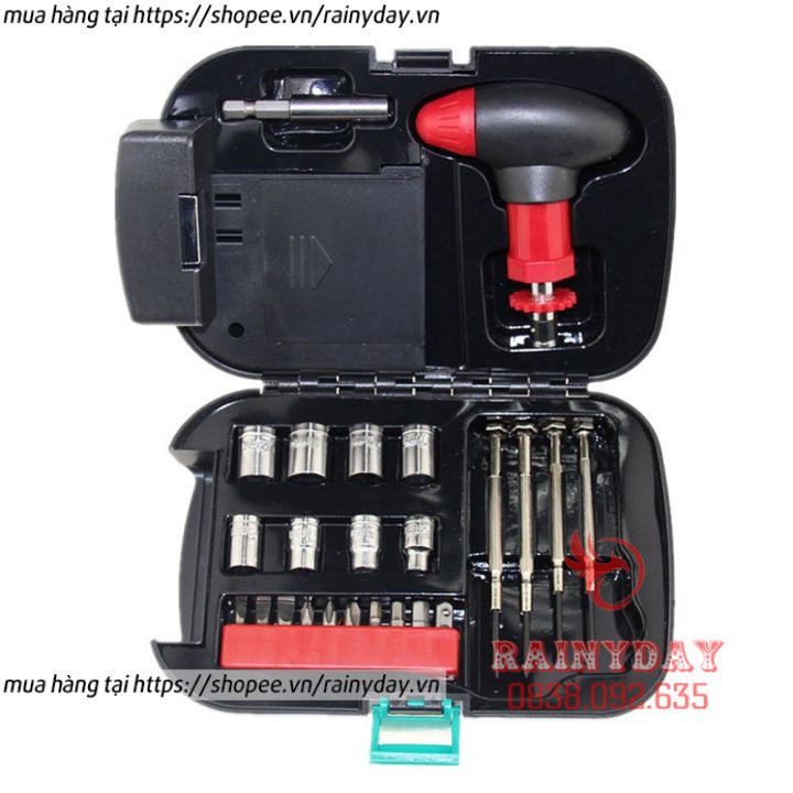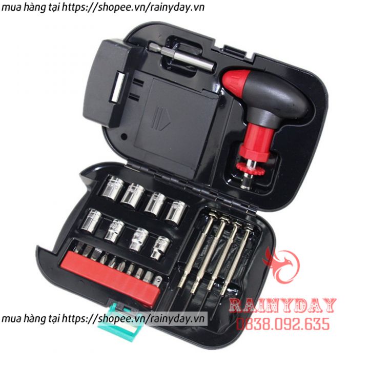 - Bộ dụng cụ sửa chưa gồm 24 chi tiết , cụ thể 10 đầu xiay vít to, 8 đầu xoay lục giác, 2 đầu vít nhỏ dài 2 cạnh, 2 đầu vít nhỏ dài 4 cạnh. Rất thích hợp để sửa chữa các đồ vật trong gia đình.