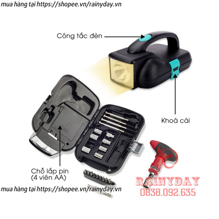 Nhà cửa & Đời sống > Dụng cụ & Thiết bị tiện ích > Dụng cụ > Hộp dụng cụ cầm tay || Bộ dụng cụ sửa chữa đa năng 24 món có đèn pin, bộ đồ nghề sửa chữa đa năng cho gia đình, xe máyCòn hàng