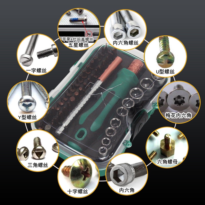 Bộ dụng cụ sửa chữa đa năng bỏ túi tiện lợi 47 chi tiết hộp vàng