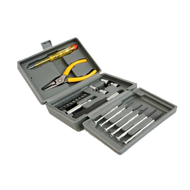 Trọn bộ bao gồm 15 dụng cụ đa năng như Kìm, vít,dao dọc giấy… công cụ hỗ trợ hiệu quả cho công việc sửa chữa các vật dụng điện, kiểm tra, bảo trì hệ thống lưới điện, phát hiện hở mạch, hư hỏng…Bộ dụng cụ làm từ chất liệu thép bền chắc và sáng đẹp.